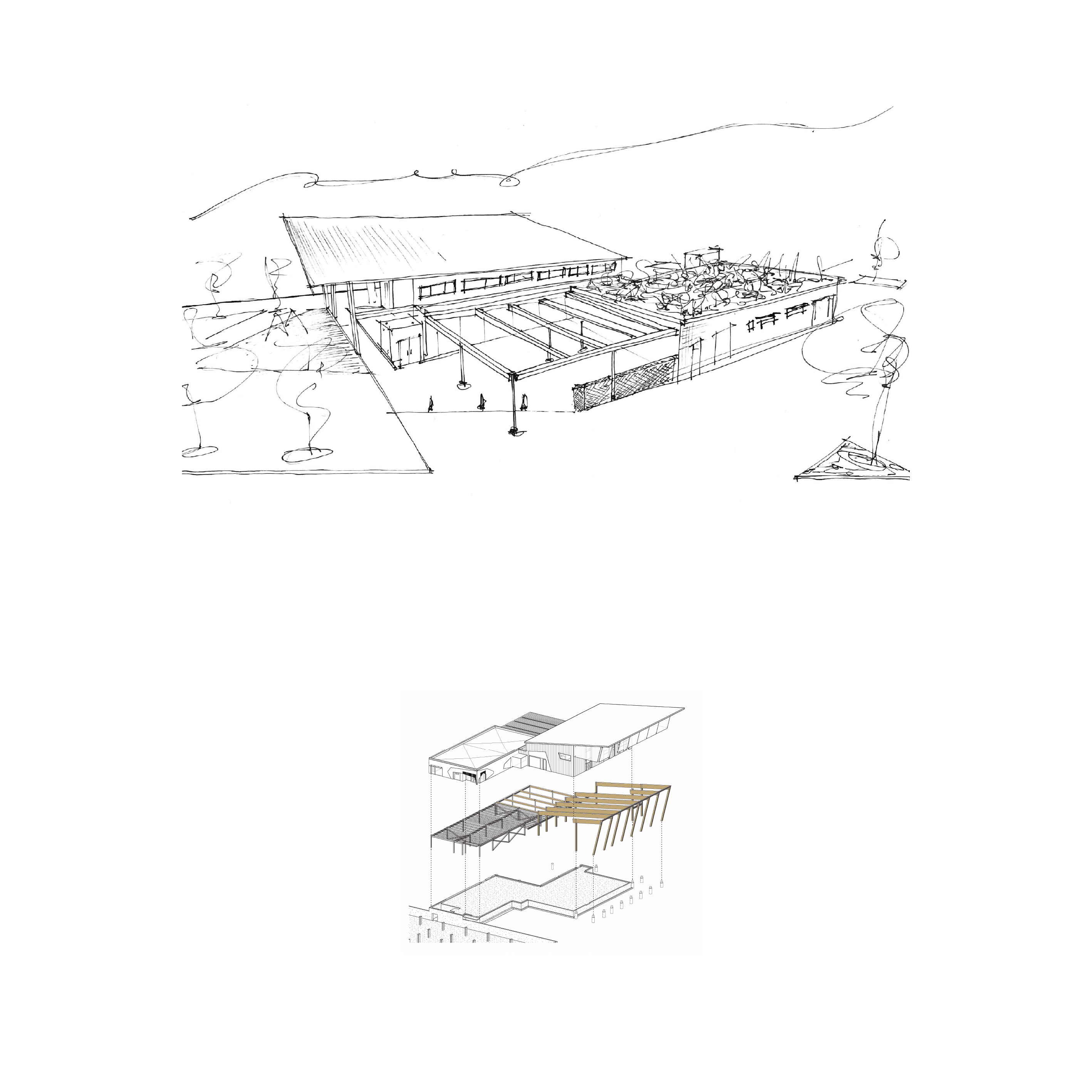 Volume révélé | Croquis et axonométrie éclatée permettent de comprendre clairement la structure et les proportions du projet, offrant une vision complète du volume et de ses relations spatiales.